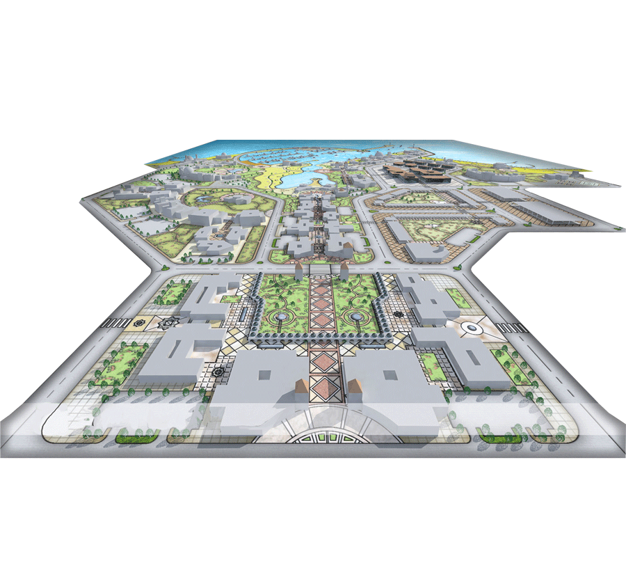 1- Planning & designing of cities, districts, compounds, resorts & tourist villages.